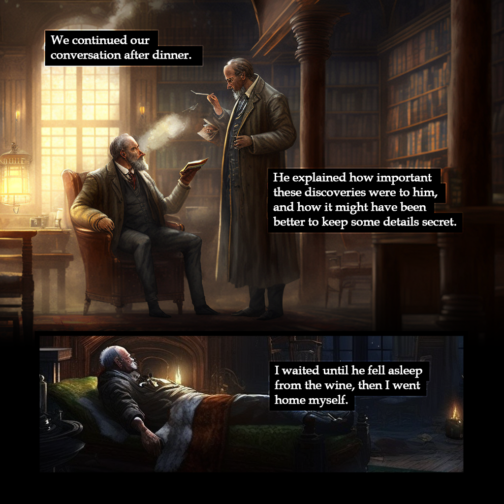 I have written a short story. It was a small experiment in storytelling and graphic representation, created relatively easily and quickly. As a theme, I chose the world of Lovecraft, and I must admit that several of his works circulated in my mind during the creation process, acting as continuous influences. I myself didn't know what would come out of it, but I believe I have crafted a pleasant short story. I think these solutions - the simultaneous application of textual and visual generation using AI assistance - will become increasingly common in the future. For me, the emphasis was on creating a random story that still provides some entertainment and, in line with the trends, looks good as well.